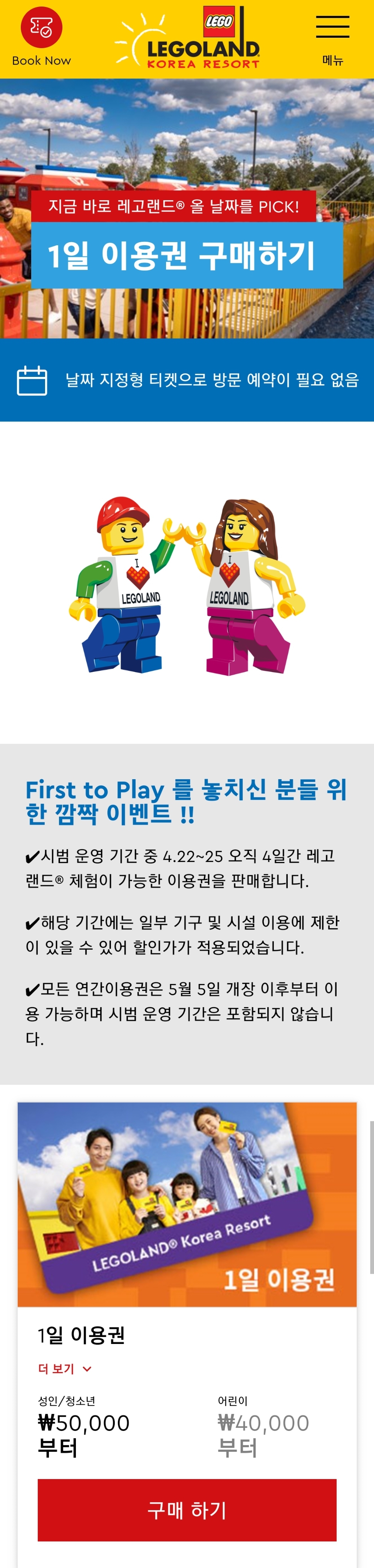 1일 이용권 구매하기 | LEGOLAND Korea Resort