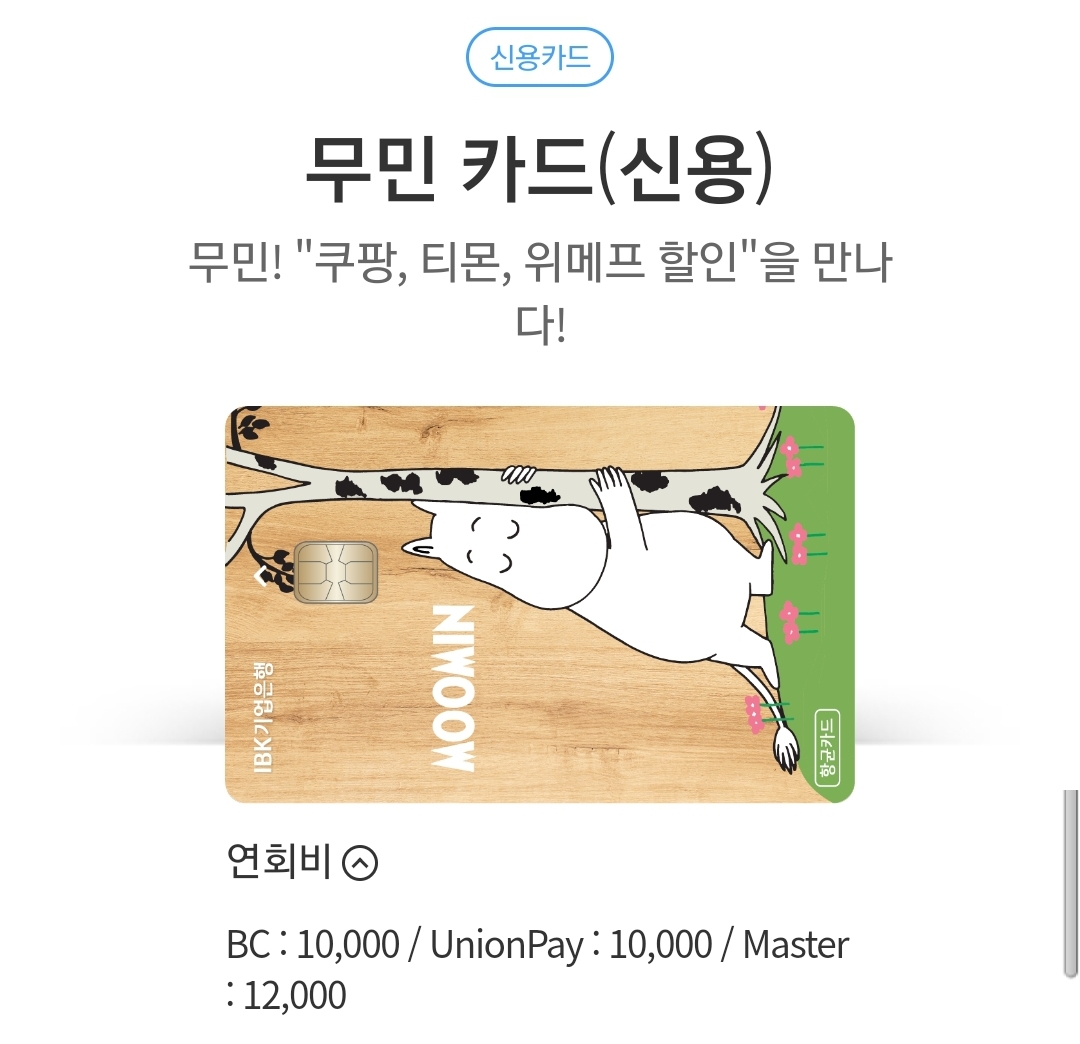 오늘은 IBK 기업은행 무민카드