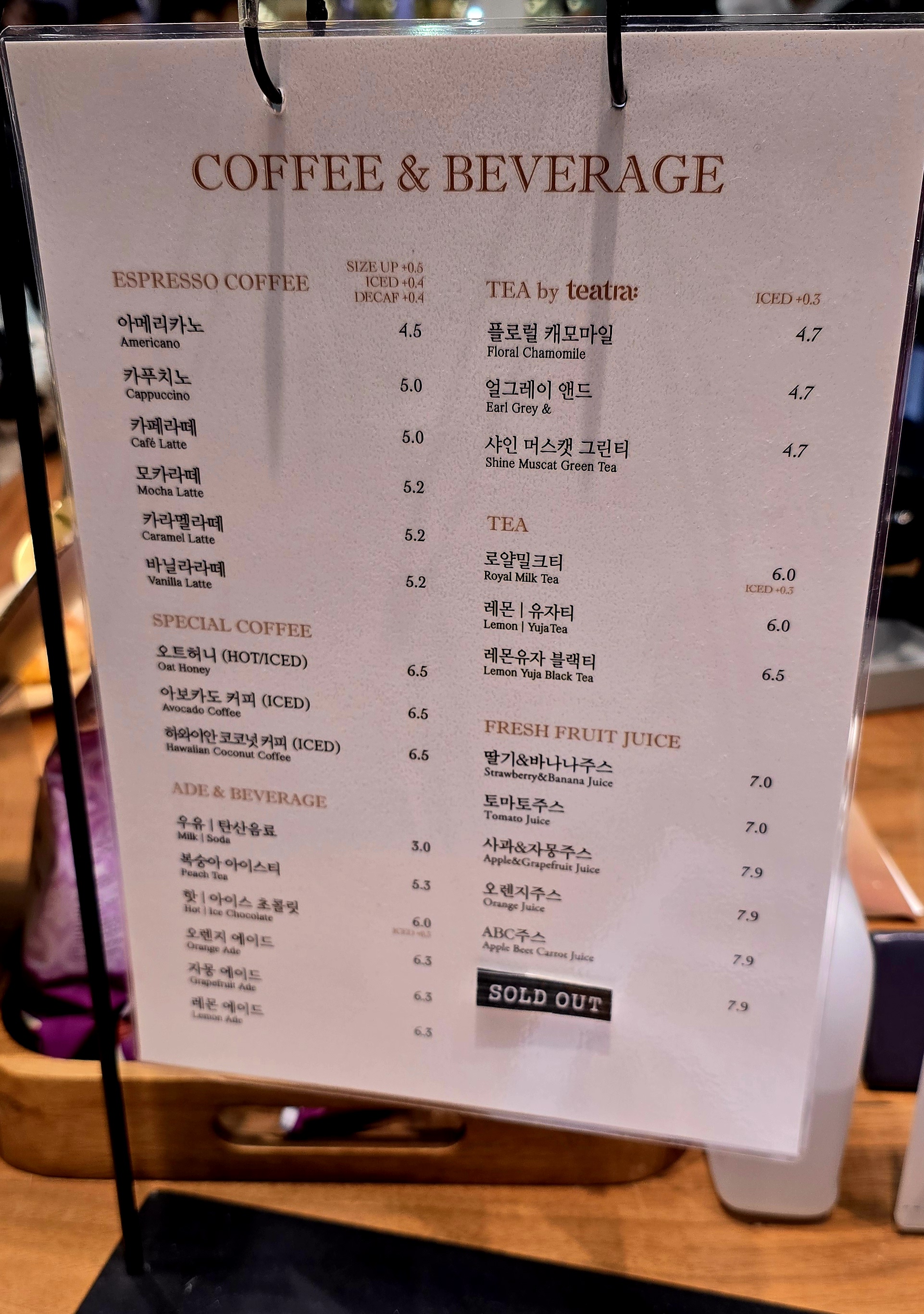 다른 음료 가격도 올려보아요.