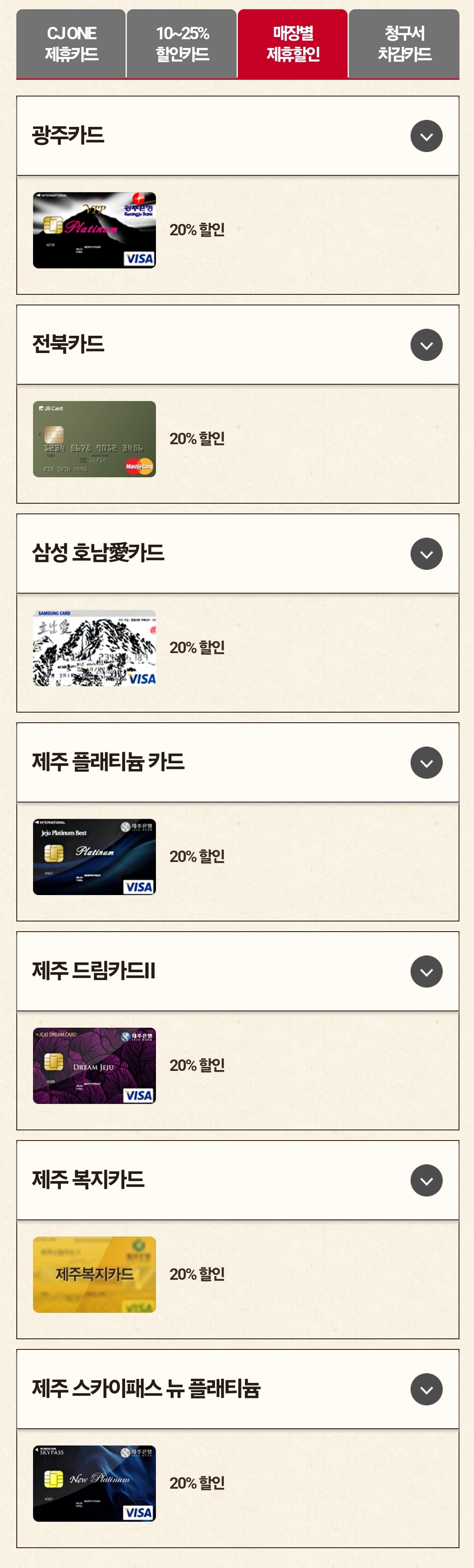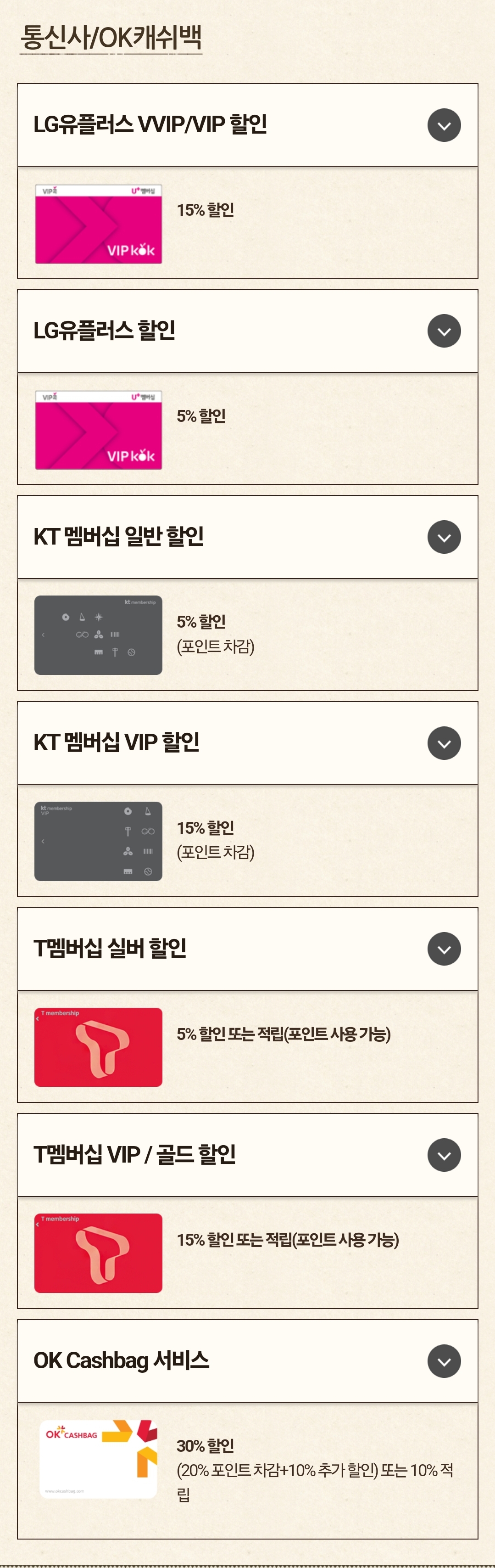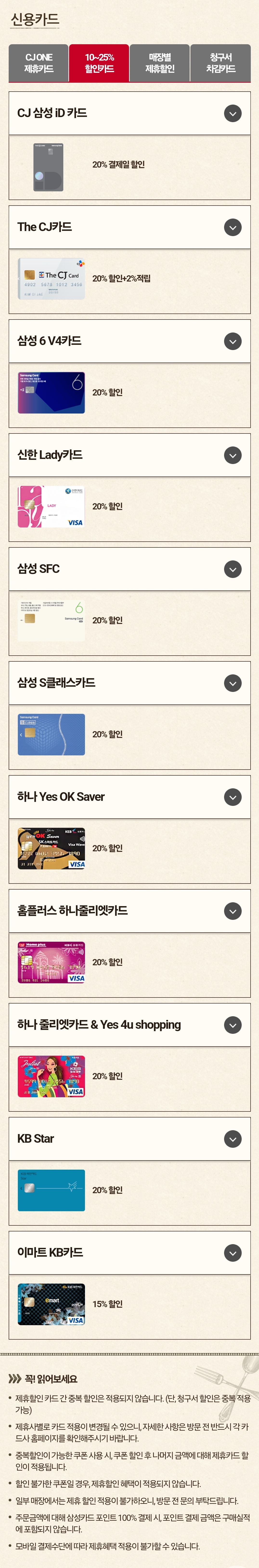 제휴 할인 카드 종류 및 할인율