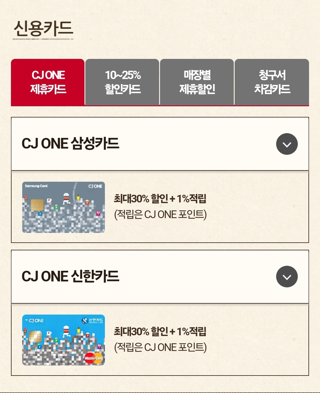 위에 2가지 카드(CJ one 삼성 & 신한)가