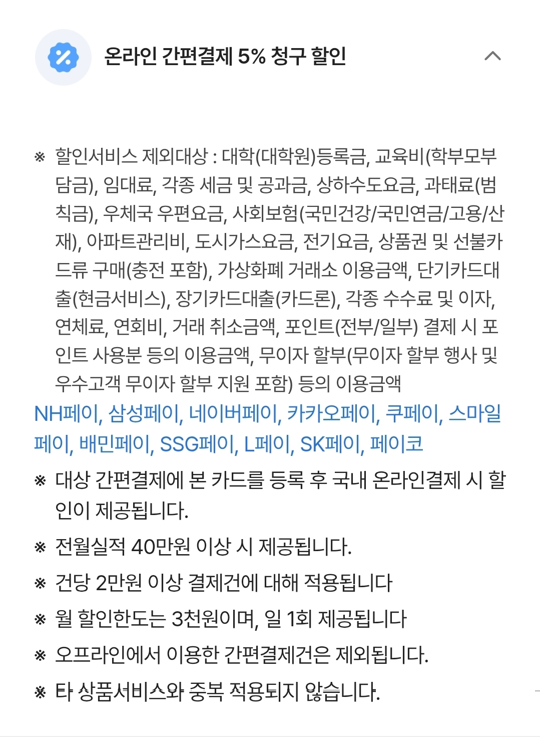 전월 실적 40만원 이상일 때