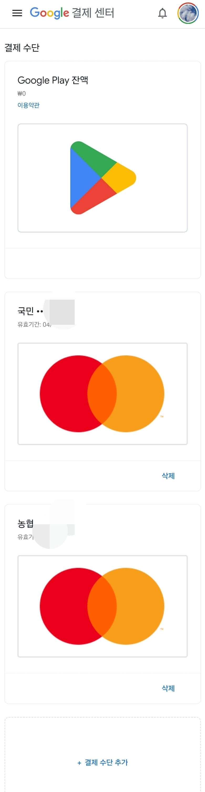 구글 결제 수단 추가는 잘 되는데
