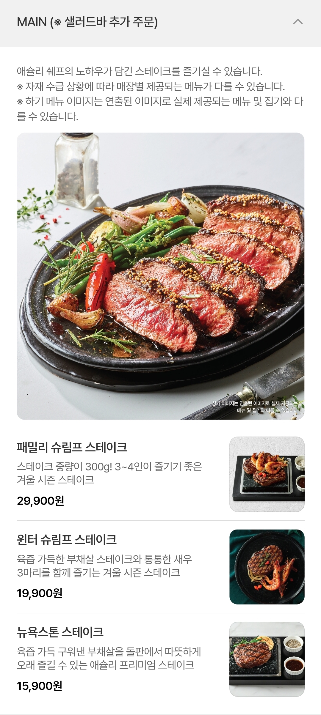이상 애슐리 가격정보랑 메뉴 알아봤어요.