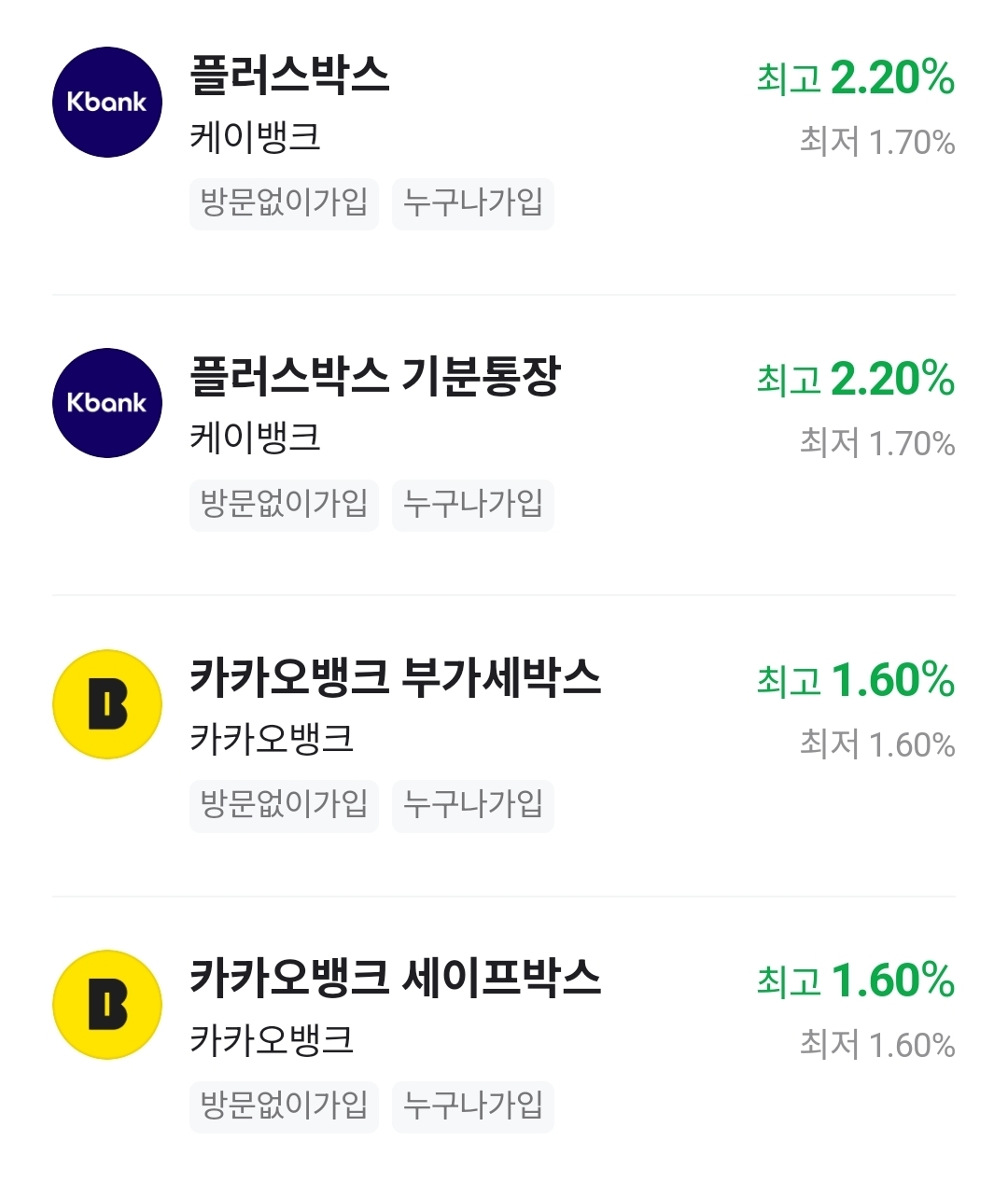 2개의 은행은 방문없이 누구나 가입이고
